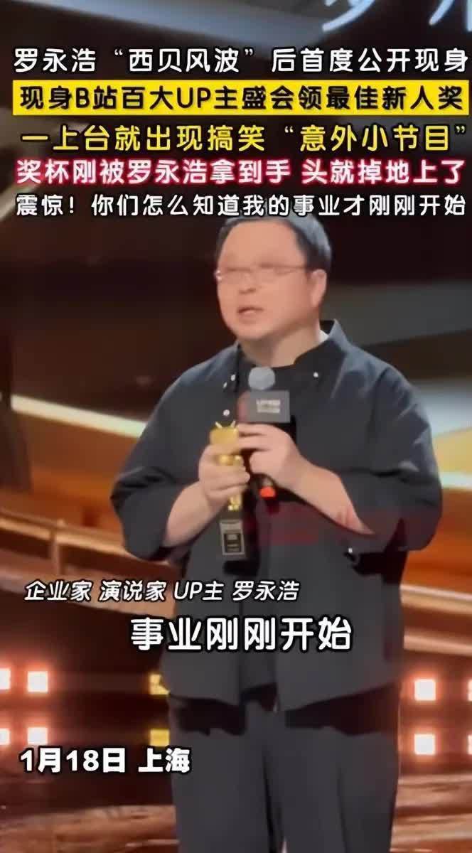 当“终身成就奖”的提名遇上自称“事业刚起步”的领奖人,一场颁奖典礼瞬间变成了态度宣言的舞台。在1月18日的B站百大UP主颁奖典礼上,罗永浩与于谦的同台,成了当晚最具戏剧性的焦点。这是罗永浩经历微博禁言风波后的首次公开亮相,他与于谦一同,以高调而幽默的方式,婉拒了主办方意图颁予的“终身成就奖”。